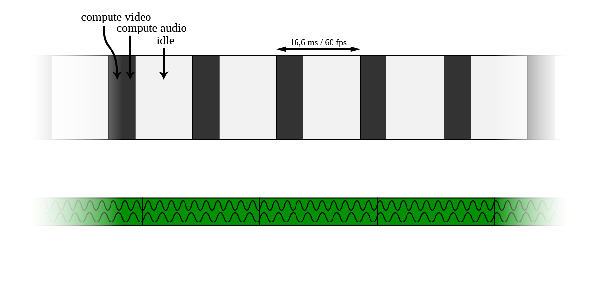 The pointer "Buffer" is our audio data. We copy that to the "Stream" pointer, where SDL expects the new data to be. When this happened we set a boolean flag writtenToDev so the next time a new frame is set up I know it's time the calculate a new buffer. And this loops on and on: